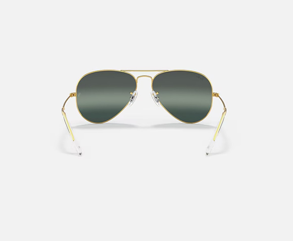 Pilot shape, gold metal frame, silver/blue chromance lens, size 58