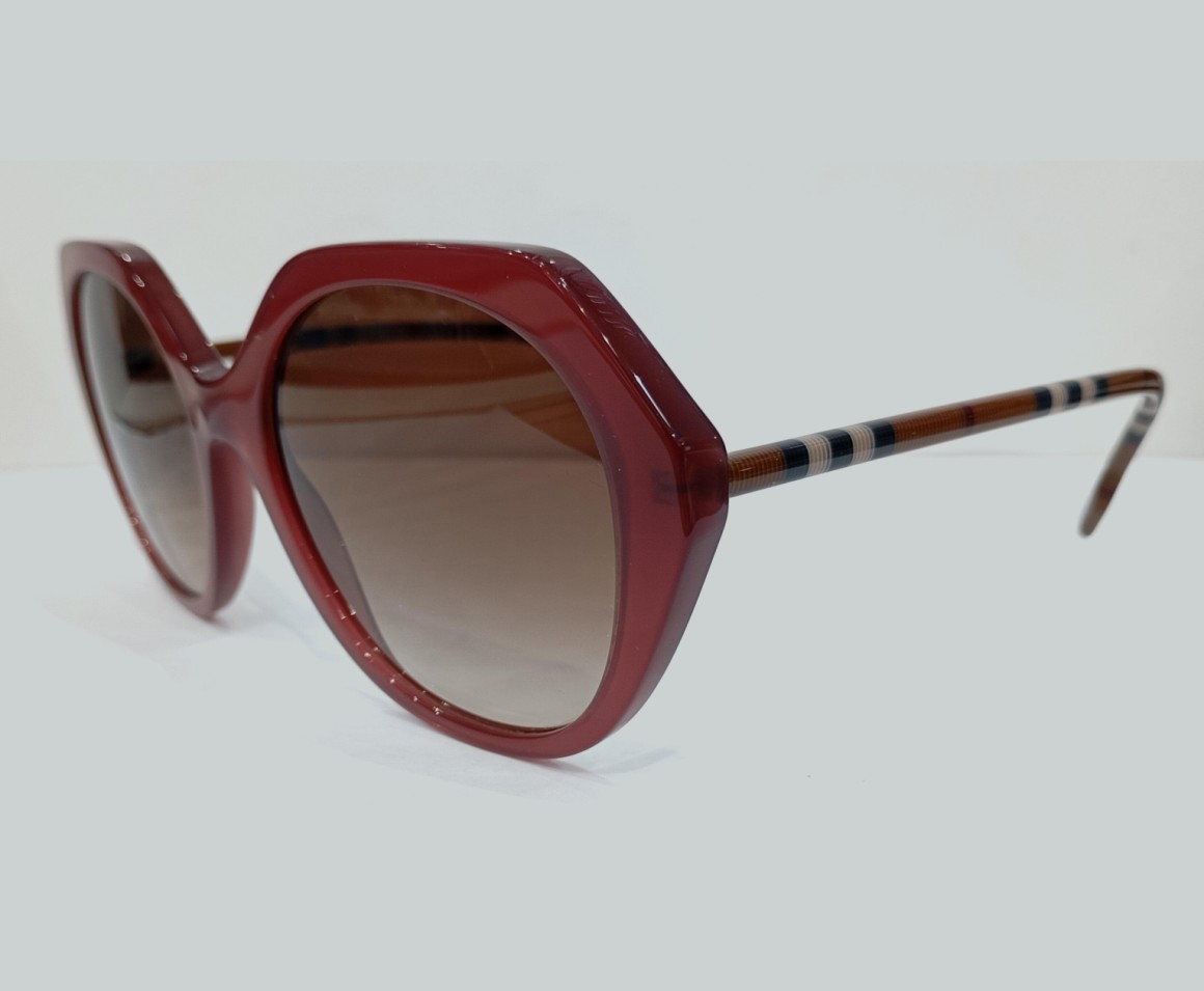 Vanessa model bordeaux color in irregular shape maroon gradient lens